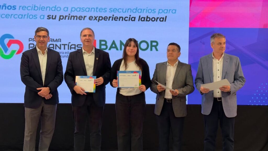 El ministro de Educación, Horacio Ferreyra, junto al presidente de BANCOR, Raúl José Paolasso, formaron parte del acto de cierre de las Pasantías y Prácticas Educativas 2025 en el Banco de la Provincia de Córdoba. Este programa lleva una década de crecimiento sostenido permitiendo que miles de jóvenes den sus primeros pasos en el mundo laboral.