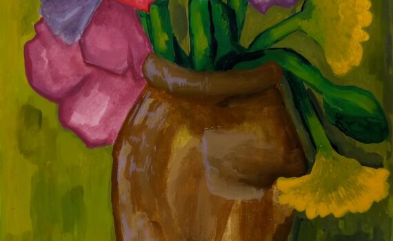 Recreación de una pintura de Ricardo Pedroni. Se eligieron las flores bajo el género bodegón y la representación figurativo naturalista.