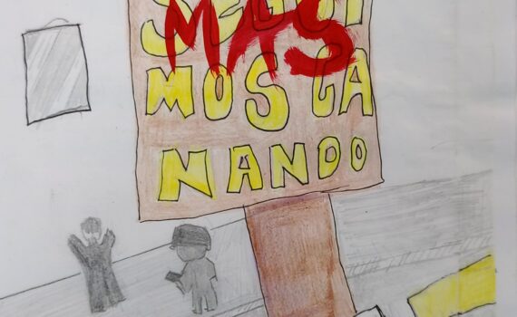 Obra basada en la dictadura cívico militar. Representa la hipocresía de ese tiempo, mentiras del gobierno de facto confrontadas con la cruel realidad que sucedía en las calles con los seres queridos que eran reprimidos y desaparecidos. Se resaltan en rojo las palabras Nunca Más.