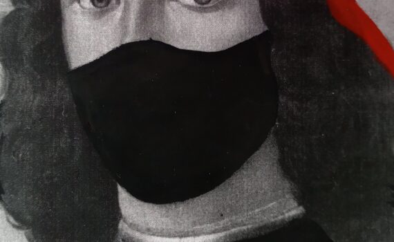 La obra es una recreación de la pintura llamada «Retrato de un hombre joven» de Botticelli y contextualizada con la inclusión de elementos de la actualidad: barbijo y gorra.